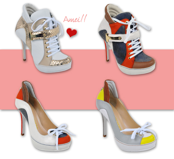 Nesse contexto, dando uma conferida no Facebook hoje, não é que me deparo com um modelo diferente de sneaker que a grife Jorge Bischoff – e quem lê o blog sabe que já é marca parceira nossa faz um tempinho – está preparando para o verão 2013? Sim, meninas, eles já existem: sneakers com salto fino! A JB decidiu trocar a plataforma anabelada, usual nesses modelos, pelo salto fino – dando origem ao glam sneaker – coleção da marca que foi aprovada por nós. Confere e nos diz o que achou: